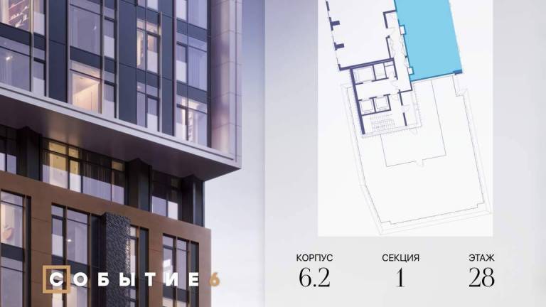 Продаётся 4-комнатная квартира от застройщика: общая площадь 131.10 м, жилая 60.20 м, кухня 28.30 м, 37-й этаж, жилой квартал «Событие-6», корпус 2 (секция 5...