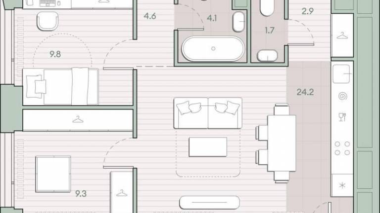 Продаётся 3-комн. квартира от застройщика: общая площадь 89.80 м, жилая 43.20 м, кухня 29.60 м, 17-й этаж, жилой квартал «Остров 7», корпус 7 (секция 1) . Срок...