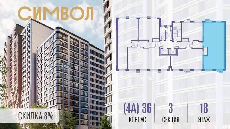 Продается 3-комнатная квартира от застройщика: общая площадь 87.80 м, жилая 42.40 м, кухня 22.50 м, 18-й этаж, жилой квартал «Гордость», корпус 36 (секция 2) .
