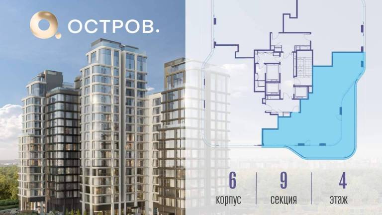 Продаётся 4-комн. квартира от застройщика: общая площадь 151.30 м, жилая 58.10 м, кухня 40.90 м, 9-й этаж, жилой квартал «Остров 12», корпус 6 (секция 1) .