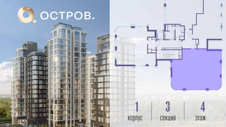 Продаётся 4-комн. квартира от застройщика: общая площадь 123.50 м, жилая 50.30 м, кухня 37.20 м, 15-й этаж, жилой квартал «Остров 12», корпус 1 (секция 2) .