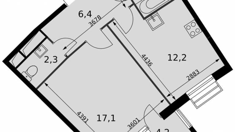 Продаётся 1-комн. квартира от застройщика: общая площадь 42.40 м, жилая м, кухня м, 2-й этаж, жилой квартал «Остров 14», корпус 2 (секция 2) . Срок сдачи: 2...