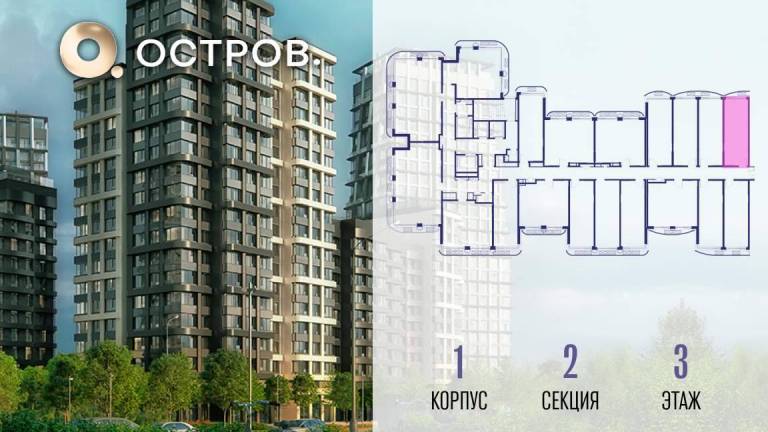 Продаётся квартира от застройщика: общая площадь 28.00 м, жилая 14.40 м, кухня 5.00 м, 3-й этаж, жилой квартал «Остров 14», корпус 1 (секция 2) . Срок сдачи: 2...