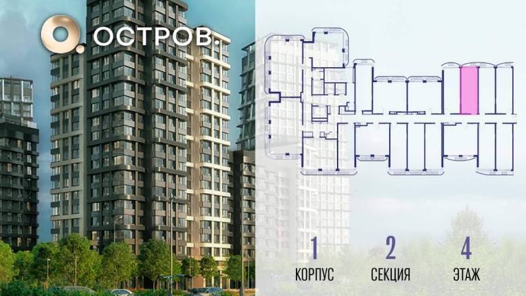 Продаётся квартира от застройщика: общая площадь 28.00 м, жилая 14.40 м, кухня 5.00 м, 4-й этаж, жилой квартал «Остров 14», корпус 1 (секция 2) . Срок сдачи: 2...