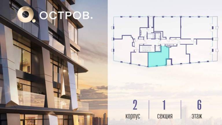 Продаётся 2-комн. квартира от застройщика: общая площадь 80.00 м, жилая 32.30 м, кухня 30.90 м, 10-й этаж, жилой квартал «Остров 12», корпус 1 (секция 1) .