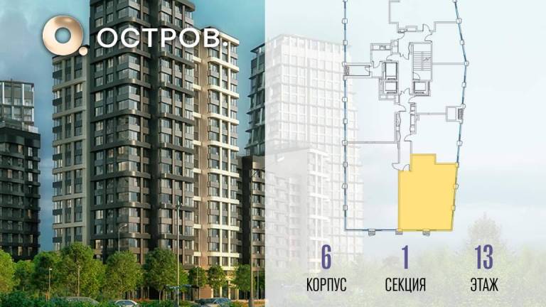 Продаётся 3-комн. квартира от застройщика: общая площадь 87.70 м, жилая 44.10 м, кухня 22.20 м, 13-й этаж, жилой квартал «Остров 14», корпус 6 (секция 1) .
