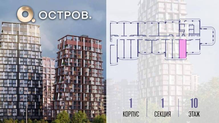Продаётся квартира от застройщика: общая площадь 28.00 м, жилая 14.40 м, кухня 5.00 м, 9-й этаж, жилой квартал «Остров 14», корпус 1 (секция 1) . Срок сдачи: 2...