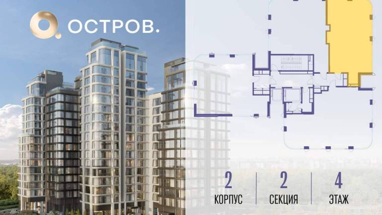 Продаётся 4-комн. квартира от застройщика: общая площадь 149.50 м, жилая 68.90 м, кухня 47.80 м, 9-й этаж, жилой квартал «Остров 12», корпус 2 (секция 1) .