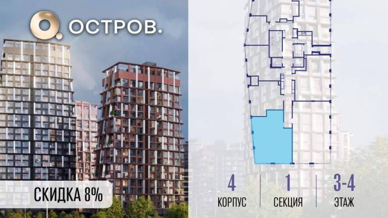 Продаётся 4-комн. квартира от застройщика: общая площадь 112.70 м, жилая 55.90 м, кухня 23.50 м, 3-й этаж, жилой квартал «Остров 14», корпус 4 (секция 1) .