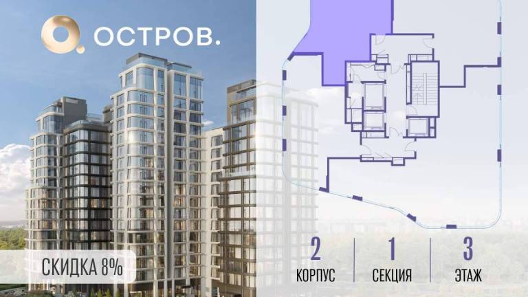 Продаётся 3-комн. квартира от застройщика: общая площадь 114.70 м, жилая 50.30 м, кухня 31.80 м, 8-й этаж, жилой квартал «Остров 12», корпус 2 (секция 1) .