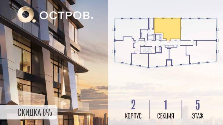 Продаётся 4-комн. квартира от застройщика: общая площадь 114.20 м, жилая 58.90 м, кухня 28.10 м, 2-й этаж, жилой квартал «Остров 12», корпус 2 (секция 1) .