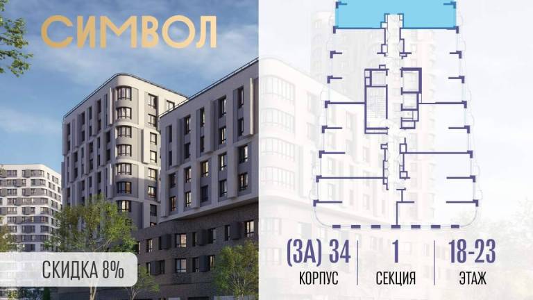 Продаётся 2-комнатная квартира от застройщика: общая площадь 61.90 м, жилая 33.00 м, кухня 17.80 м, 35-й этаж, жилой квартал «Событие-6», корпус 2 (секция 5...