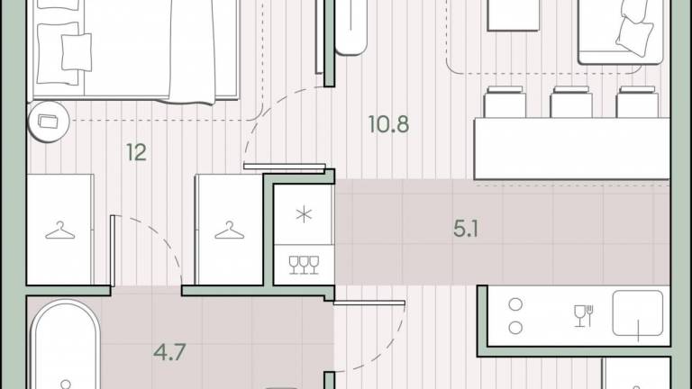 Продаётся 2-комн. квартира от застройщика: общая площадь 81.40 м, жилая 32.30 м, кухня 26.10 м, 12-й этаж, жилой квартал «Остров 12», корпус 1 (секция 1) .