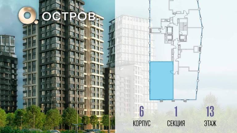 Продаётся 3-комн. квартира от застройщика: общая площадь 87.70 м, жилая 44.10 м, кухня 22.20 м, 13-й этаж, жилой квартал «Остров 14», корпус 6 (секция 1) .