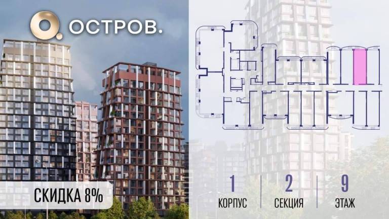 Фильтры1Продаётся квартира от застройщика: общая площадь 28.00 м, жилая 14.40 м, кухня 5.00 м, 9-й этаж, жилой квартал «Остров 14», корпус 1 (секция 2) . Срок сдачи: 2...