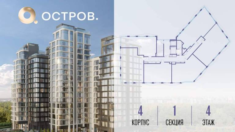 Продаётся 4-комн. квартира от застройщика: общая площадь 134.90 м, жилая 50.10 м, кухня 41.70 м, 16-й этаж, жилой квартал «Остров 7», корпус 5 (секция 2) .