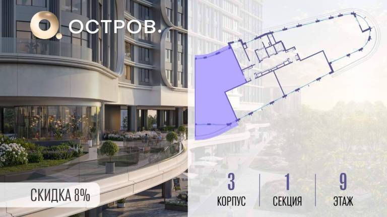 Фильтры1Продаётся квартира от застройщика: общая площадь 177.00 м, жилая 53.80 м, кухня 60.50 м, 9-й этаж, жилой квартал «Остров 7», корпус 3 (секция 1) . Срок сдачи...