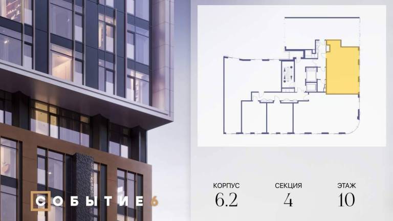 Продаётся 2-комнатная квартира от застройщика: общая площадь 64.30 м, жилая 26.30 м, кухня 20.60 м, 6-й этаж, жилой квартал «Событие-6», корпус 2 (секция 5...