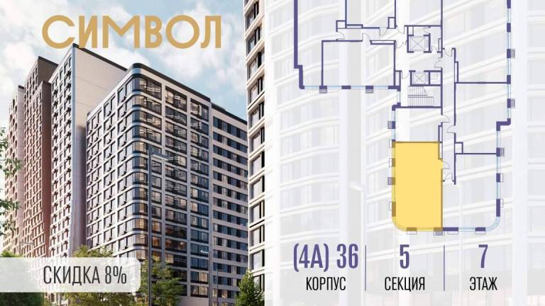 Продается 1-комнатная квартира от застройщика: общая площадь 36.40 м, жилая 14.00 м, кухня 13.40 м, 8-й этаж, жилой квартал «Гордость», корпус 36 (секция 4) .
