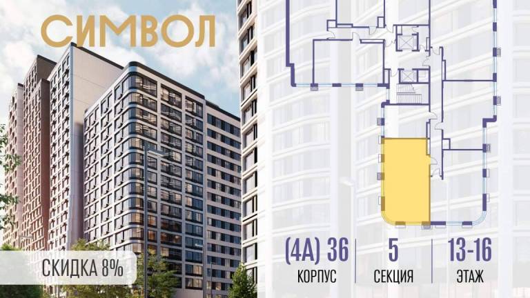 Продается квартира-студия от застройщика: общая площадь 35.30 м, жилая 10.00 м, кухня 14.80 м, 17-й этаж, жилой квартал «Гордость», корпус 36 (секция 4) . Срок...