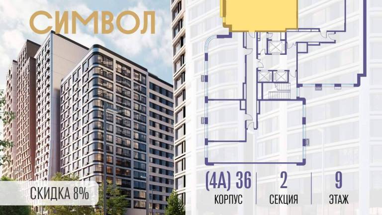 Продаётся 2-комнатная квартира от застройщика: общая площадь 61.90 м, жилая 33.00 м, кухня 17.80 м, 35-й этаж, жилой квартал «Событие-6», корпус 2 (секция 5...