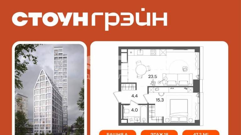 Старт продаж квартир в ЖК бизнес+ класса от девелопера STONE В продаже функциональная и светлая односпальная квартира с кухней-гостиной и одной спальней для...