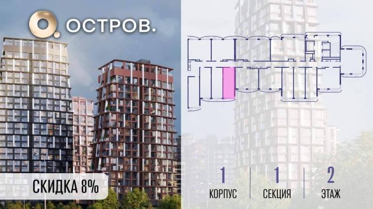 Продаётся квартира от застройщика: общая площадь 34.50 м, жилая 19.60 м, кухня 5.00 м, 11-й этаж, жилой квартал «Остров 12», корпус 1 (секция 2) . Срок сдачи...