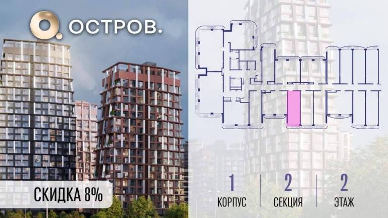 Фильтры2Продаётся квартира от застройщика: общая площадь 28.60 м, жилая 14.60 м, кухня 5.00 м, 2-й этаж, жилой квартал «Остров 14», корпус 1 (секция 2) . Срок сдачи: 2...