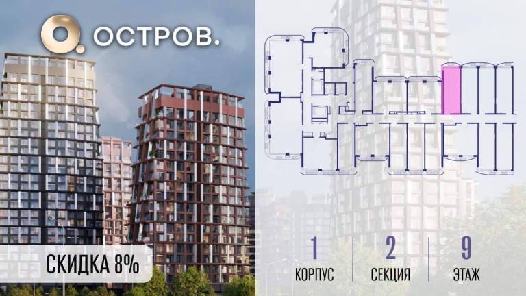 Фильтры2Продаётся квартира от застройщика: общая площадь 28.00 м, жилая 14.40 м, кухня 5.00 м, 9-й этаж, жилой квартал «Остров 14», корпус 1 (секция 2) . Срок сдачи: 2...