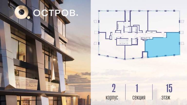 Продаётся 2-комн. квартира от застройщика: общая площадь 71.50 м, жилая 29.40 м, кухня 26.80 м, 11-й этаж, жилой квартал «Остров 12», корпус 1 (секция 2) .