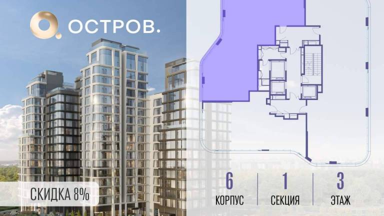 Продаётся 3-комн. квартира от застройщика: общая площадь 133.30 м, жилая 47.90 м, кухня 33.30 м, 8-й этаж, жилой квартал «Остров 12», корпус 6 (секция 1) .