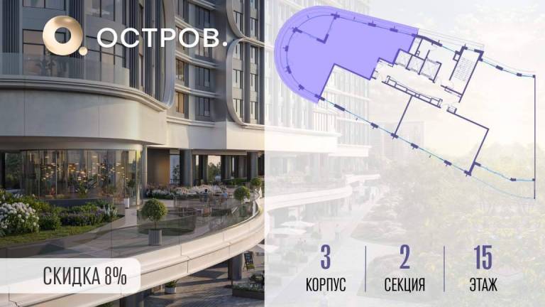 Продаётся 3-комн. квартира от застройщика: общая площадь 127.90 м, жилая 36.30 м, кухня 35.80 м, 15-й этаж, жилой квартал «Остров 7», корпус 2 (секция 2) .