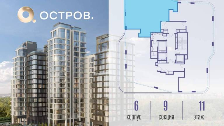 Продаётся 4-комн. квартира от застройщика: общая площадь 123.70 м, жилая 50.20 м, кухня 37.10 м, 2-й этаж, жилой квартал «Остров 12», корпус 1 (секция 2) .