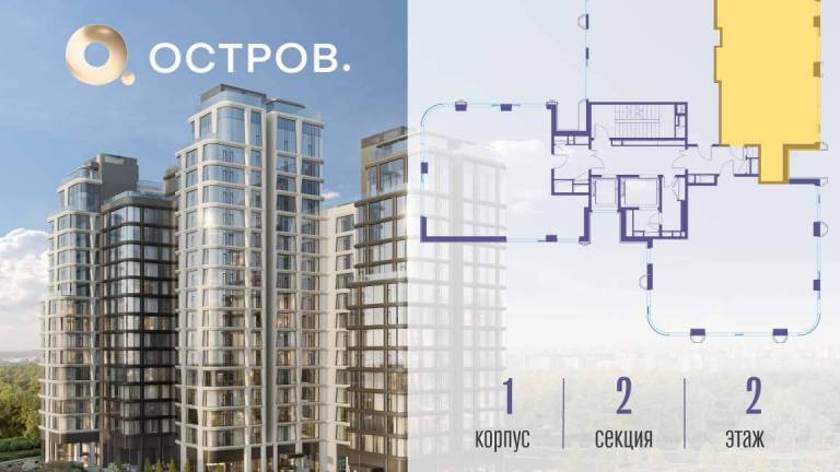 Продаётся 4-комн. квартира от застройщика: общая площадь 141.80 м, жилая 55.80 м, кухня 42.50 м, 2-й этаж, жилой квартал «Остров 12», корпус 1 (секция 1) .