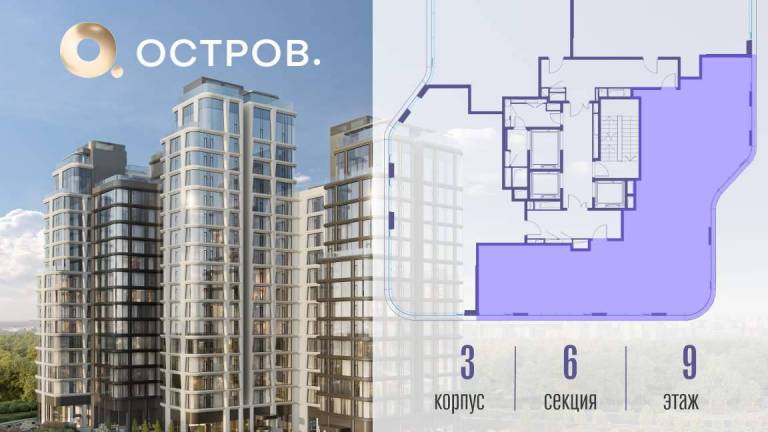 Продаётся 4-комн. квартира от застройщика: общая площадь 123.50 м, жилая 50.30 м, кухня 37.20 м, 6-й этаж, жилой квартал «Остров 12», корпус 1 (секция 2) .