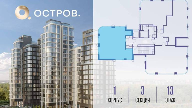 Продаётся 2-комн. квартира от застройщика: общая площадь 75.80 м, жилая 30.80 м, кухня 32.00 м, 13-й этаж, жилой квартал «Остров 12», корпус 1 (секция 3) .