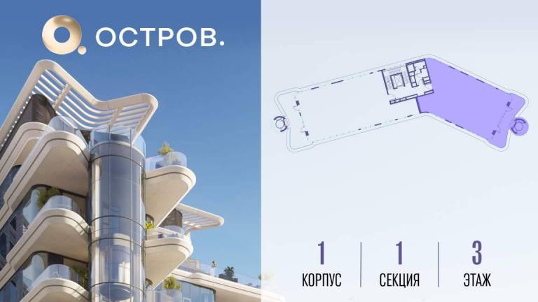 Продаётся 3-комн. квартира от застройщика: общая площадь 101.20 м, жилая 40.30 м, кухня 35.50 м, 21-й этаж, жилой квартал «Остров 7», корпус 7 (секция 2) .