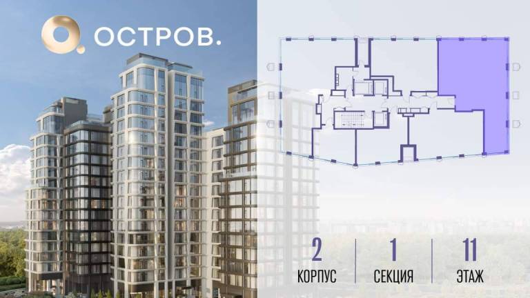 Продаётся 4-комн. квартира от застройщика: общая площадь 113.10 м, жилая 58.90 м, кухня 27.20 м, 3-й этаж, жилой квартал «Остров 12», корпус 2 (секция 1) .