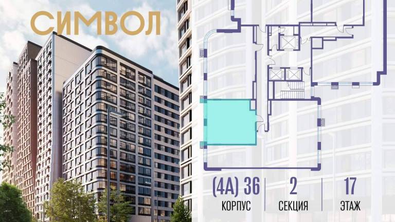 Продается 1-комнатная квартира от застройщика: общая площадь 48.00 м, жилая 14.00 м, кухня 23.30 м, 18-й этаж, жилой квартал «Вдохновение», корпус 35 (секция...