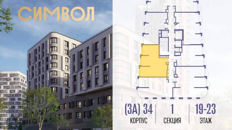 Продается 3-комнатная квартира от застройщика: общая площадь 87.10 м, жилая 38.60 м, кухня 17.60 м, 10-й этаж, жилой квартал «Вдохновение», корпус 34 (секция...