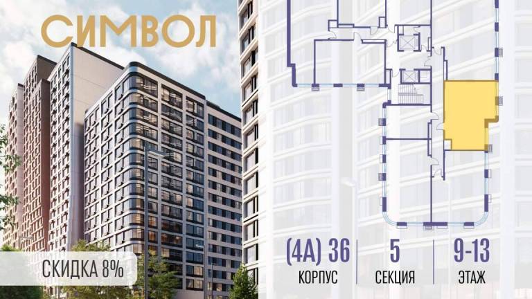 Продается 4-комнатная квартира от застройщика: общая площадь 105.80 м, жилая м, кухня м, 8-й этаж, жилой квартал «Гордость», корпус 39 (секция 1) . Срок сдачи...