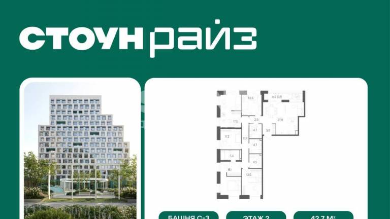 Старт продаж квартир в ЖК бизнес+ класса от девелопера STONE В продаже функциональная и светлая трехспальная квартира с кухней-гостиной и тремя спальнями для...