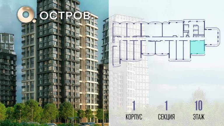 Продаётся 1-комн. квартира от застройщика: общая площадь 38.60 м, жилая 14.10 м, кухня 18.20 м, 16-й этаж, жилой квартал «Остров 14», корпус 1 (секция 2) .