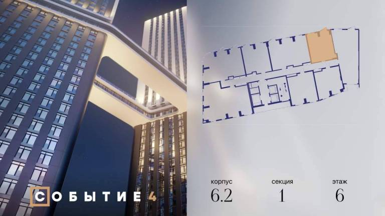 Продаётся 2-комнатная квартира от застройщика: общая площадь 61.40 м, жилая 31.60 м, кухня 16.90 м, 8-й этаж, жилой квартал «Событие-6», корпус 2 (секция 3...