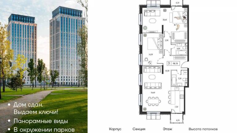Продается 3-комн. квартира, площадью 97.28 м2 в монолитной новостройке в 12 мин. пешком от м. Кунцевская, район города – Кунцево. Возможен вариант покупки с...