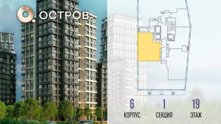 Продаётся 4-комн. квартира от застройщика: общая площадь 126.50 м, жилая 60.30 м, кухня 26.50 м, 19-й этаж, жилой квартал «Остров 14», корпус 6 (секция 1) .