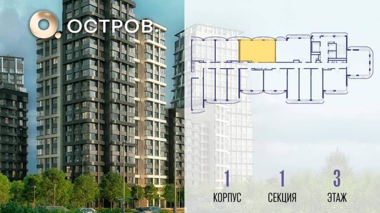 Продаётся квартира от застройщика: общая площадь 28.00 м, жилая 14.40 м, кухня 5.00 м, 3-й этаж, жилой квартал «Остров 14», корпус 1 (секция 1) . Срок сдачи: 2...
