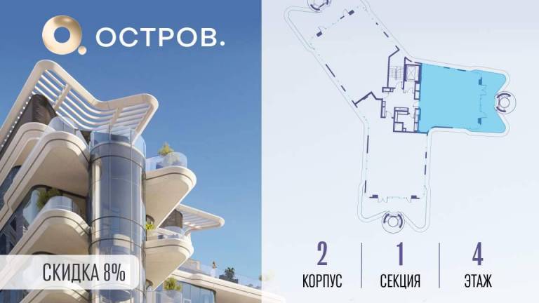 Продаётся 4-комн. квартира от застройщика: общая площадь 148.70 м, жилая 50.40 м, кухня 43.10 м, 12-й этаж, жилой квартал «Остров 7», корпус 3 (секция 1) .
