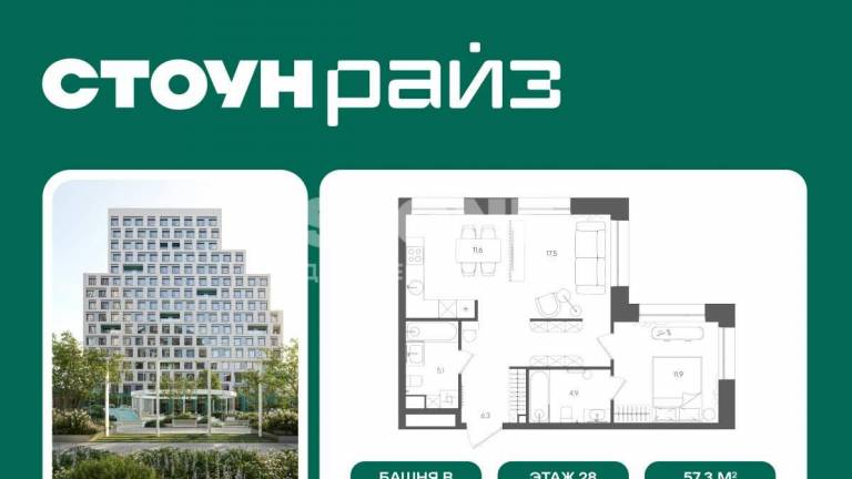 Старт продаж квартир в ЖК бизнес+ класса от девелопера STONE В продаже функциональная и светлая двуспальная квартира с кухней-гостиной и двумя спальнями для...