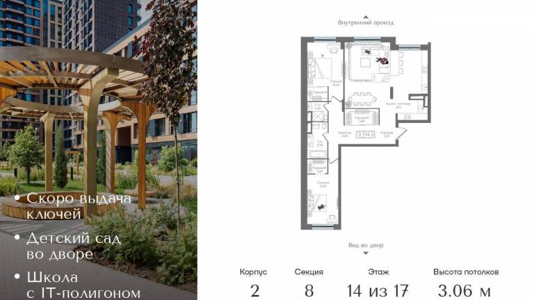 Рассрочка 0% от застройщика. Первоначальный взнос от 20%. Предложение действует до 31 декабря 2025 года Квартира на 14 этаже в жилом комплексе премиум-класса...